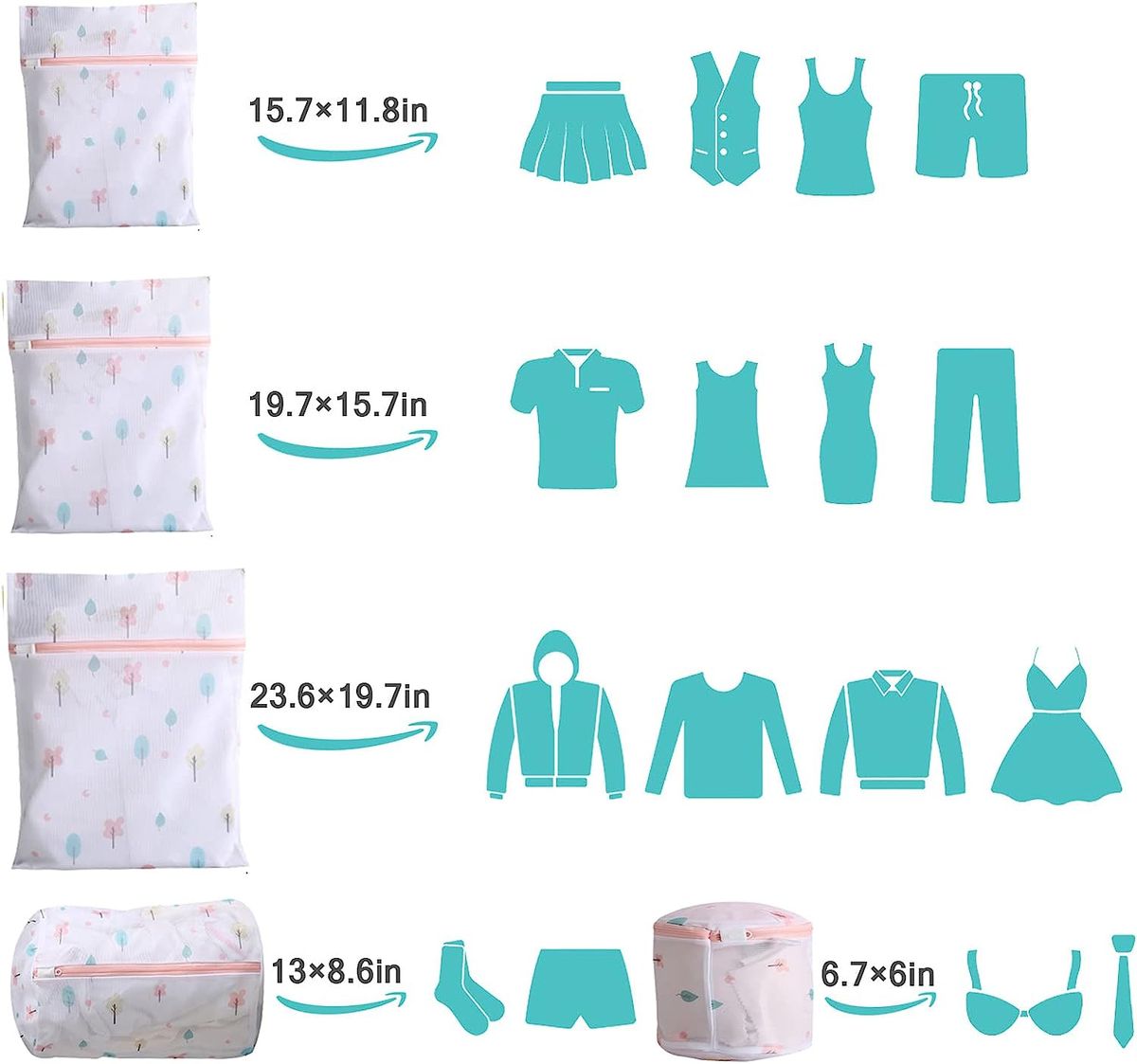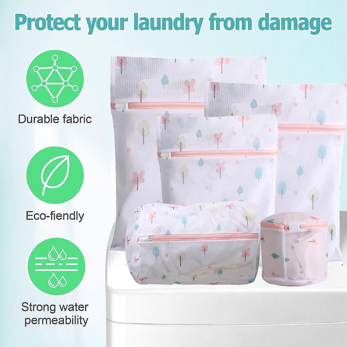 This fun laundry bag is perfect gift. This mesh wash bag is the secret to keep your delicate clothes looking like new and the safest way to clean expensive lingerie, stockings and underwear. This delicates wash bag can protect the most delicate and expensive fabric from other clothes in the washing machine and will not cause abrasion from the bag itself.Mesh washing bag to care your clothes. Can be used when using washing machine. Stay shape of your underwear. Zipper protection design, won't damage other clothes and machine when washing.【Perfect SIZES】5 different sizes mesh laundry bags fit your washing needs, The smaller delicates laundry bags are for lingerie, bra, underwear and socks, medium ones for tops and dresses, and larger ones for jackets and coats.【DELICATES LAUNDRY BAG FOR WASHING MACHINE】Our mesh wash bags with zippers keep laundry items separated, protecting delicate fabrics.【Durable and Healthy】Lingerie Mesh Laundry Bag Made of long lasting, breathable polyester fiber, fine mesh allows the soapy water to flow gently for optimal cleaning.【MULTIUSE ORGANIZATIONAL BAG】 In addition to being excellent laundry bags for delicates, these versatile bags are perfect for storing many small items, like toys, rubber balls, makeup, general laundry accessories, clothespins, stuffed animals, and more.【LAUNDRY JUST GOT FUN!】Liven up a boring chore with these fun and colorful laundry mesh bags. The cute patterns are sure to put a smile on your face. These mesh laundry bags make great gifts for special occasions like birthdays, Christmas, and Mother's Day.