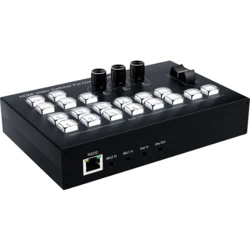 hdmi *4 in; 1 hdmi pgm & 1 multiview out; 7" touch screen; lock screen; t-bar; type-c stream; luma/chroma; rtmp stream, record; sd/hd/3g, up to 1080p60, backword compatible; input resolution adaptive, pgm output selectable; auto/cut transitions,mix/ fade/wipe effects; pip, still, mute, ftb, color bar; 2-ch mic in, 1-ch line in, 1-ch line out; afv, mix, dcb, tally... does not include stand tripod!