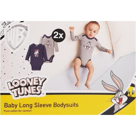 Buy Soft Cotton Looney Tunes Navy Blue And Grey Long Sleeve Bodysuits - Set Of 2 in Nigeria