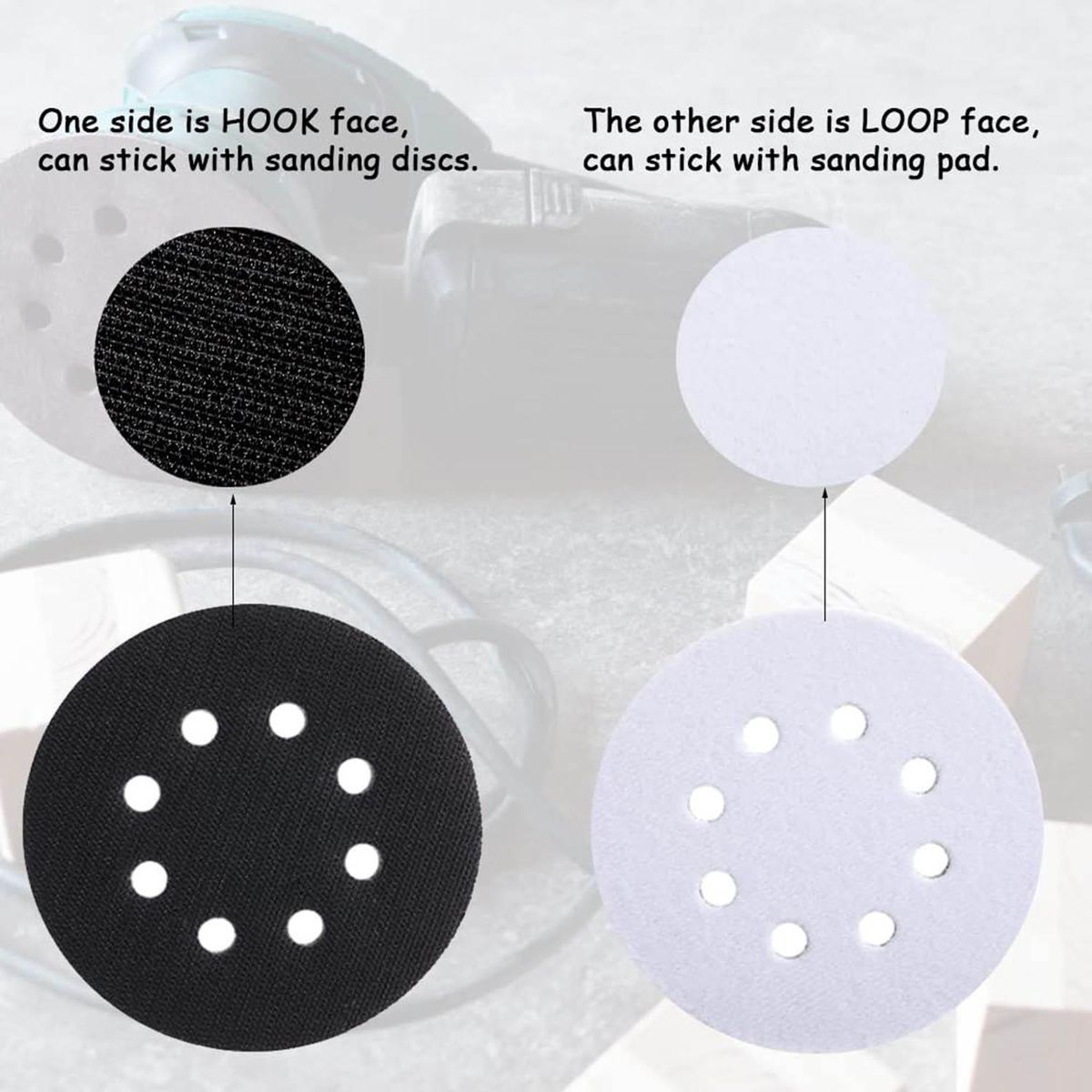[Hook ring design] The 8-hole design can prevent dust from blocking the machine, facilitate cleaning, and extend the service life of the machine. It has two different surface designs, one is the hook surface, which is used to stick the sand pan, and the other is the annular surface, which is used to stick the sand pad. In addition, white and black can work well with your sanding and polishing machine.