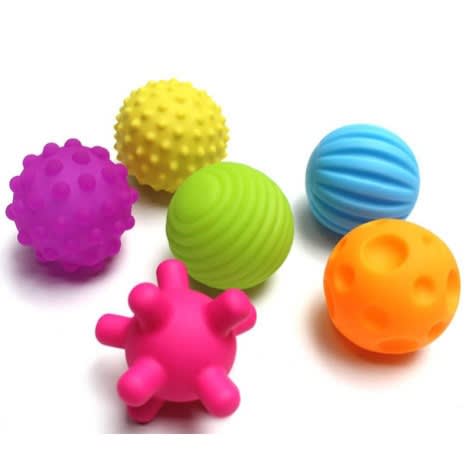 Each ball measures 2.3 inches in diameter, a perfect size for small child's hand. 6 bright & attractive colors: Blue, red, pink, green, orange and yellow.