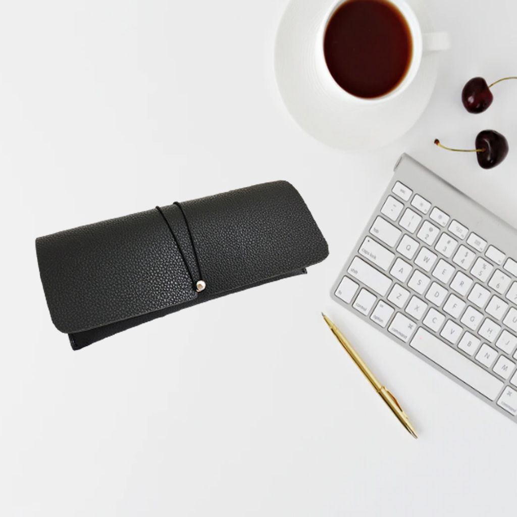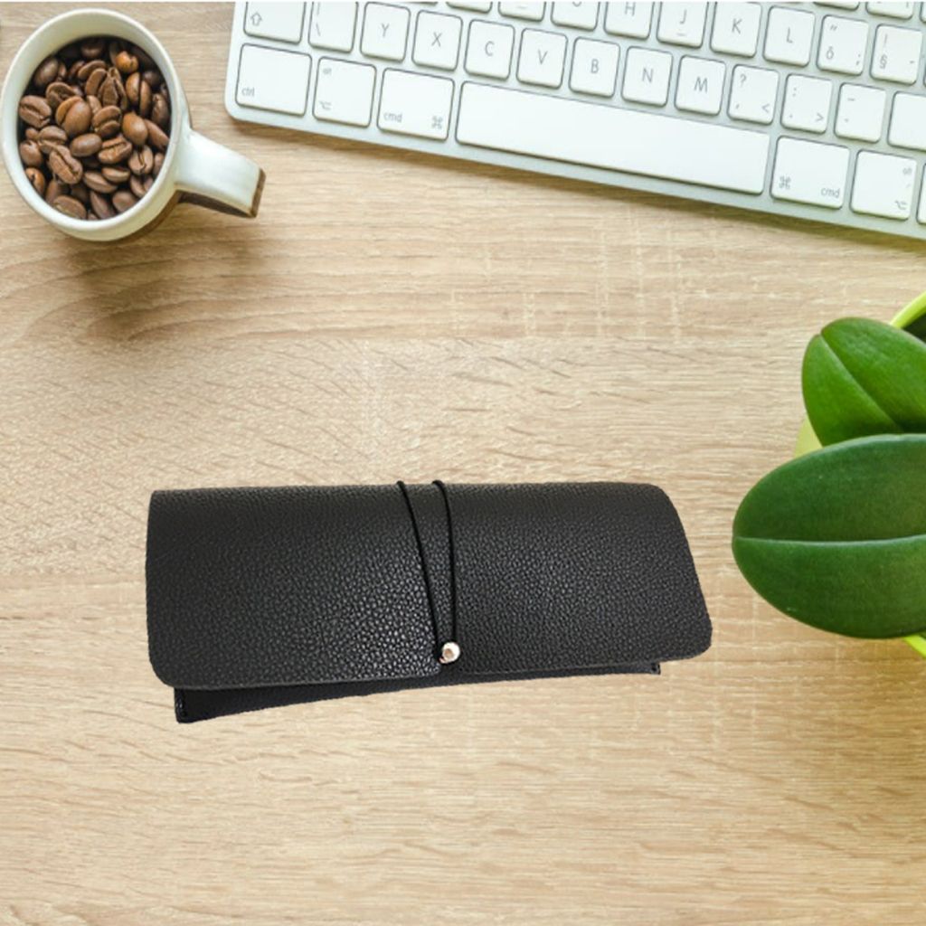 Made of PU leather material, comfortable, soft and waterproof.Lightweight and portable, does not take up space.Strap design, simple and stylish, to prevent glasses from slipping off.The soft inner liner can protect your glasses from scratches, dust, and provide protection for your glasses.Keep the glasses clean and protect the of the glasses from bending and breaking.