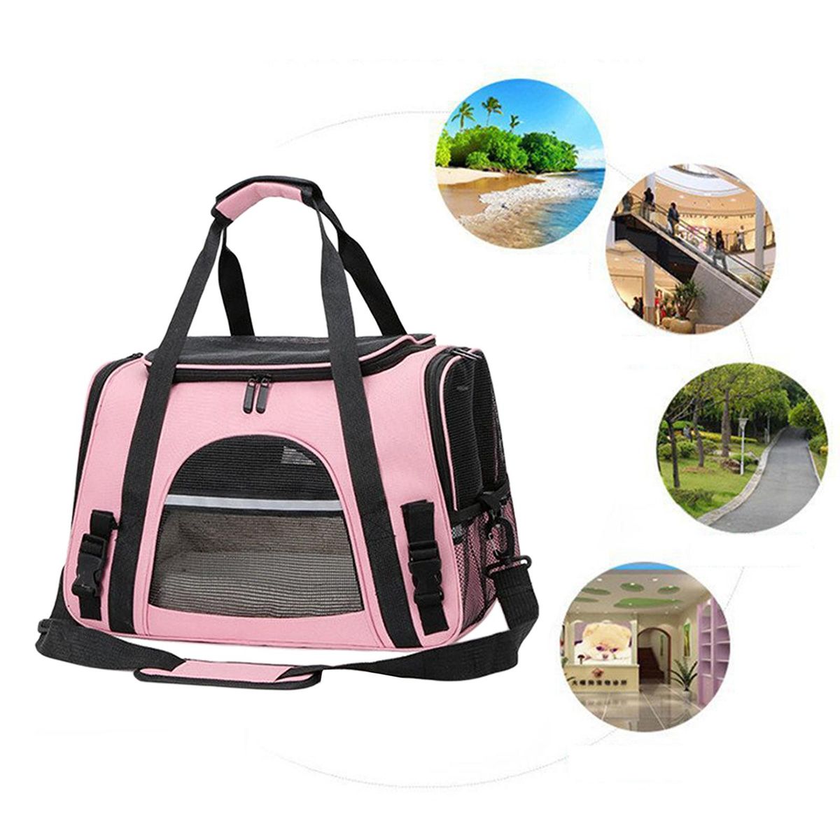 This pet carrier with two handles and a shoulder strap, you can take your pet to travel.This pet carrying bag is made of durable, lightweight nylon, which will provide a and comfortable travel for your pet.This dog carrier is portable and washable, The cozy pet pad can be removed and washed.Breathable large side windows, anti-scratch and bite-proof, windows on both sides can be opened, convenient for pets.The design emphasizes simplicity, can be folded, and is convenient for storage. The improved bottom is solid, the bag does not deform, the summer and winter underpads, and the bottom has a comfortable removable pet mat to provide a comfortable place for pets.