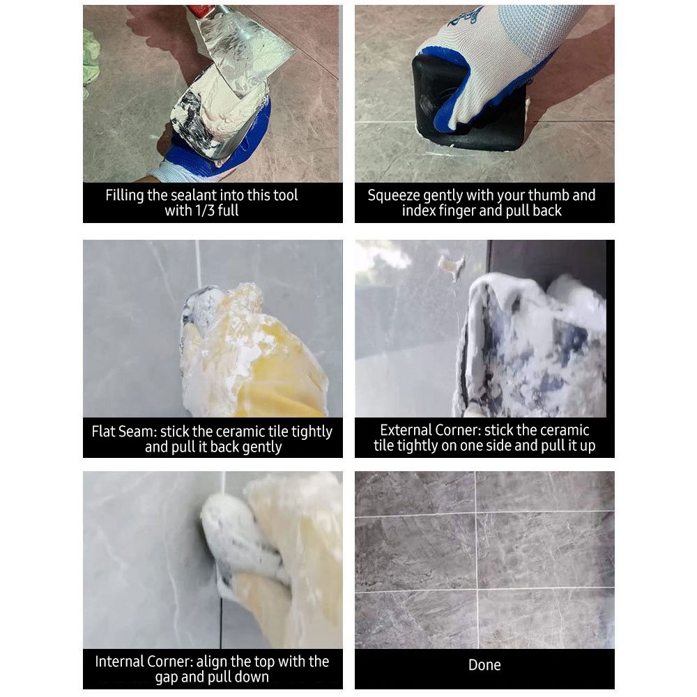 Perfect assisting tool for filling and sealing the gap between the ceramic tiles.