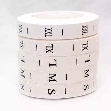 Clothes Sizing LabelsWe supply a classical, soft woven-edged size label that is irritation free when in contact with the skin. Our size labels are 100% woven polyester, designed for loop fold attachment to garments. They are presented on a roll, ready for cutting and attaching into the seams of your garments.
