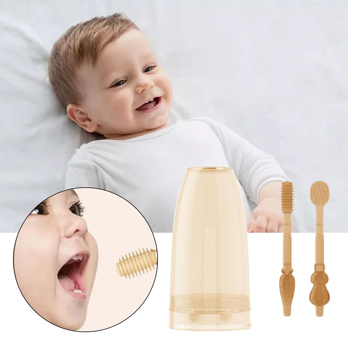 Cleaner; coating toothbrush silicone;toddler toothbrush set cleaner protable; care infant toothbrush clean cup Silicone;deciduous clean nonslip baby products;toothbrush frosted handle safety prompt line