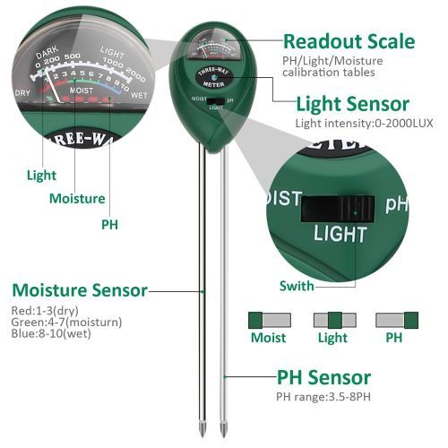 This 3- in-1 soil moisture meter is designed to better know the condition of your plant, detect soil moisture,
