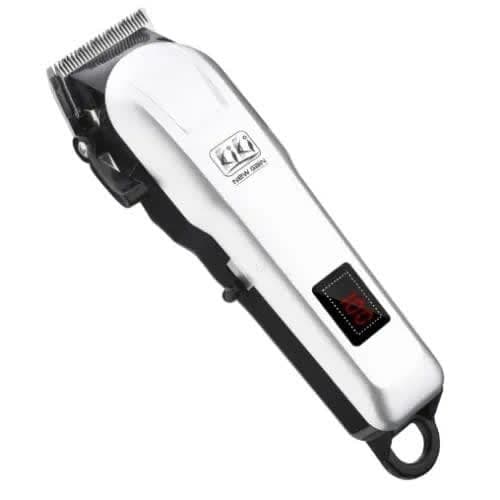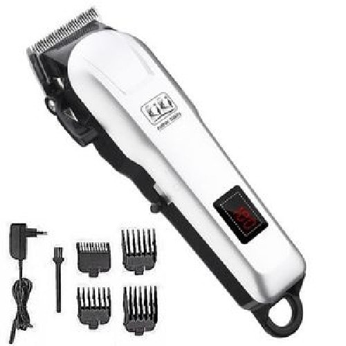 kiki rechargeable hair clipper is high precision carbon steel blades. Super sharp and low noise. With battery capacity LED display. Using high tech permanent magnet motor that won't get hot for continuous use and long life. Input: 100-240V 50/60Hz Lithium battery: 2000mAh Cord and cordless use. 4-5 hours full charge for 240 minutes use. Over charge and over discharge protection. Accessories: 4 guide combs(3,6,10 & 13mm), adaptor, cleaning brush. Professional Rechargeable wireless hair clipper Specifications: & bull; ABS housing + stainless steel blade. & bull; With battery capacity LCD display. & bull; Lithium battery:2000 mAh, 4 hours full charge for 240 minutes use. & bull; Univeral voltage adapter, support USB charge function. & bull; Accessories: 4guide combs,, cleaning brush lubrication oil, adapter and USB cable.