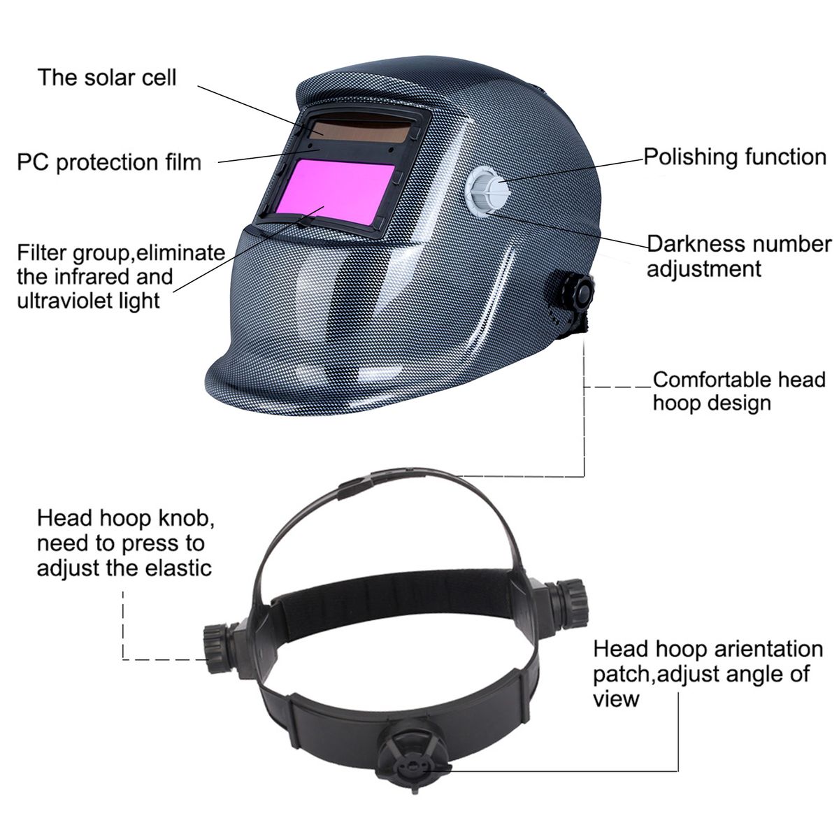 Adjustment he-ad hood, adjust the wearing angle to ensure wearing comfort.