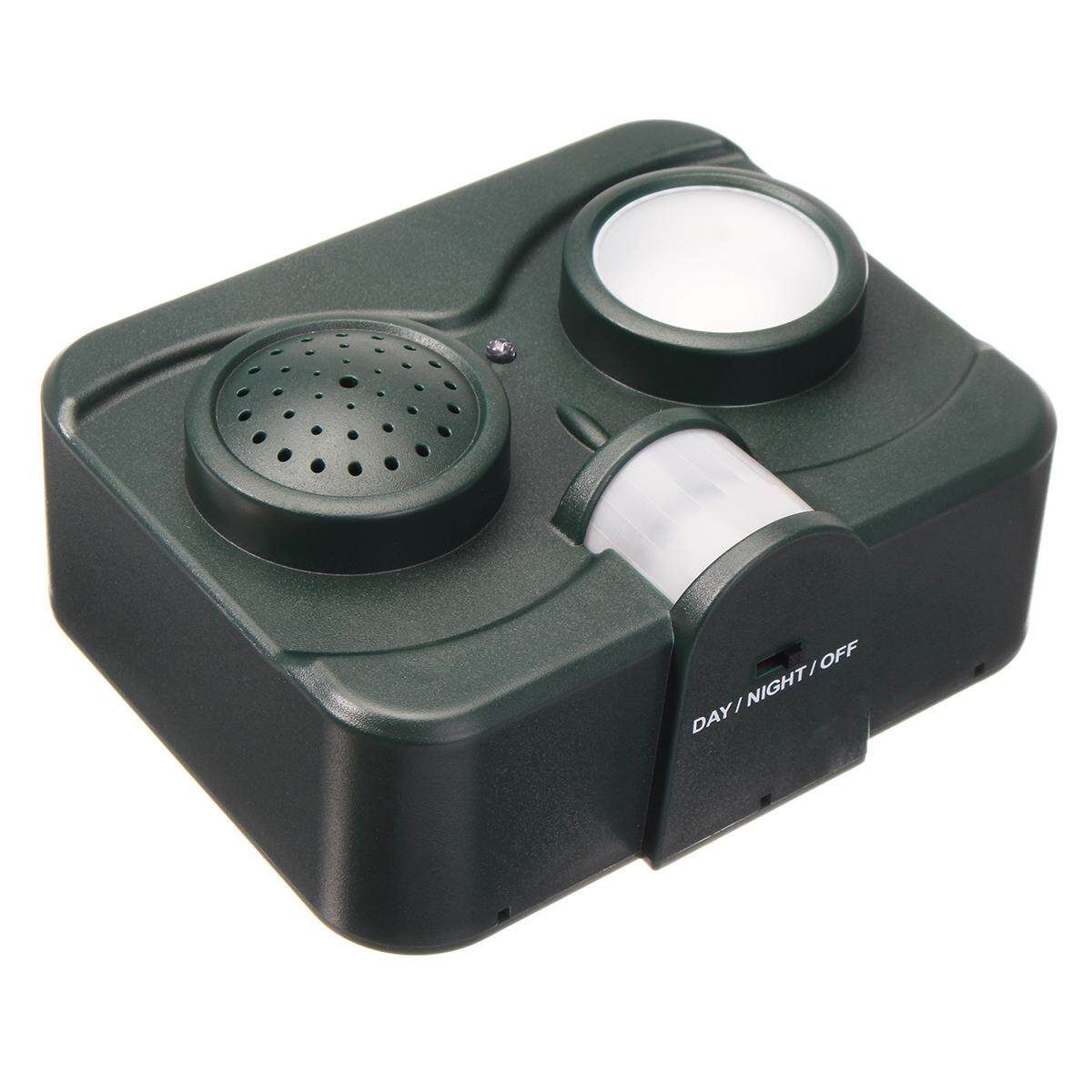 Passive Infra Red sensor(PIR) works by continuously transmitting sound of gunshot that and emitting flash light to drive away unwelcome animals, like birds and bats from your garbage bins, fruit trees, lawn, garden, flower beds and fish ponds. PIR motion is powered by 4 * AA batteries, low consumption.