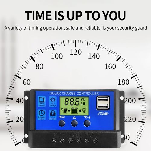 Solar Charge Controller 30A Solar Panel Battery Controller PWM Solar Controller Intelligent Regulator Adjustable LCD Display Description: Type:Solar Power Meters Material:ABS+component Power:12V/24V Display Type:LCD Display Interface:Dual USB Package List: 1x Solar Panel Battery Charge Controller Feature: Security instructions: 1. Make sure that the battery has enough voltage for the controller to recognize the type of battery before first installation. 2. The battery cable should be as short as possible to minimize losses. 3. The regulator is only suitable for lead-acid batteries: OPEN, AGM, GEL It is not suitable for nickel metal hydride batteries, lithium ions or batteries. 4. The charge controller is only suitable for the regulation of solar modules. Never connect another load source to the charge controller. Characteristics: 1. Build-in industrial microcontroller. 2. One-key configuration, digital display, automatic memory function. 3. Fully pwm-load management load. 4. Build-in short circuit protection, open circuit protection, reverse protection, over load protection 5. Dual mosfet Reverse current protection, low heat productions. Connection of the system: 1. Connect the battery to the charge controller plus and minus. 1 will be displayed, in case of detecting 12 V battery, 2 in case of detecting 24 V battery. 2. Connect the photovoltaic module to the plus and minus regulator. 3. Connect to the consumer for the charge controller plus and minus. the reverse order applies when uninstalling! An incorrect sequence order can damage the controller! Notes: 1.Due to the different monitor and light effect, the actual color of the item might be slightly different from the color showed on the pictures. Thank you! 2.Please allow 1-3cm measuring deviation due to manual measurement.