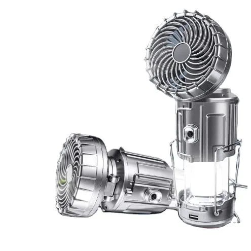 Rechargeable Solar Fan With Lamp And Power Bank- Silver