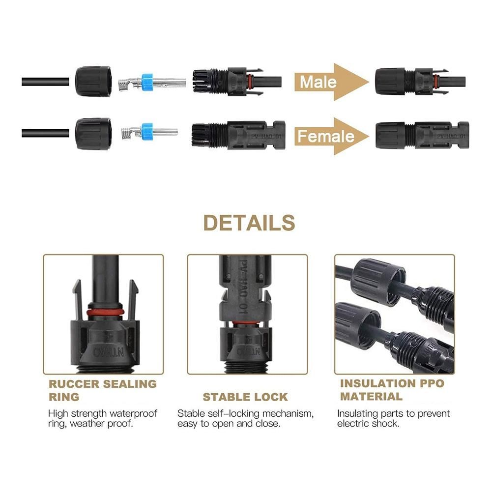 For the Male and Female Solar Panel Cable Connectorswith a waterproof and weather proof ring and with stable self-locking mechanism