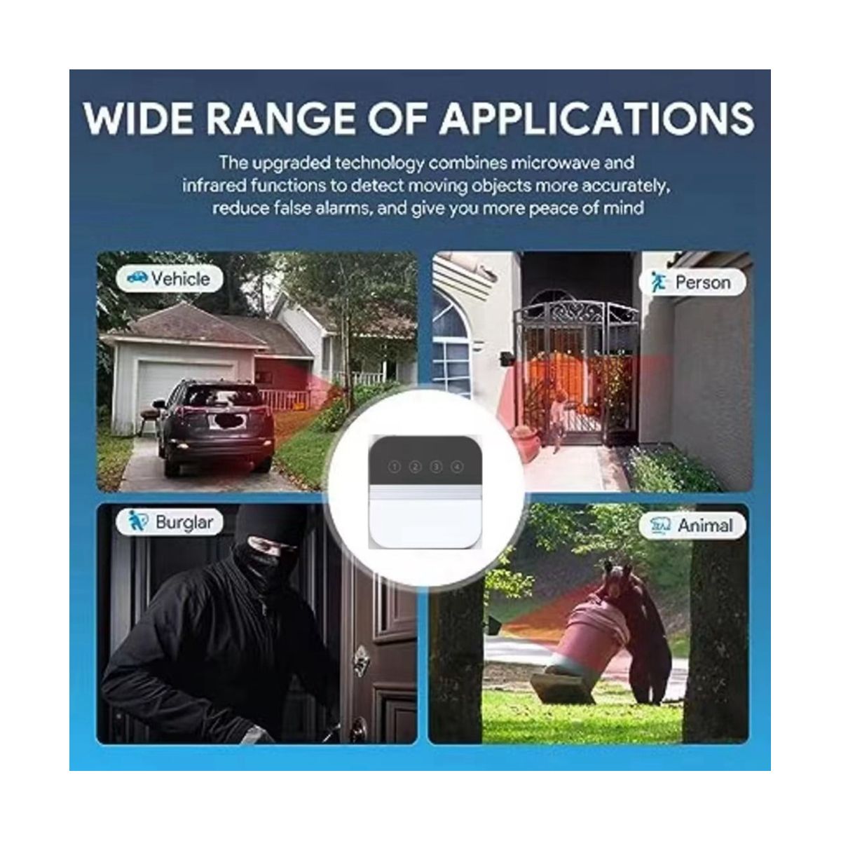 Upgrade your security with advanced sensing technology. Combining microwave and infrared technology ensures accurate detection and reduces false alarms. Perfect for driveways, front porches, gates and more.