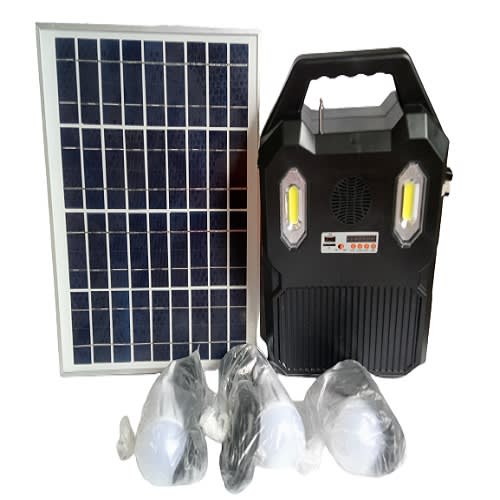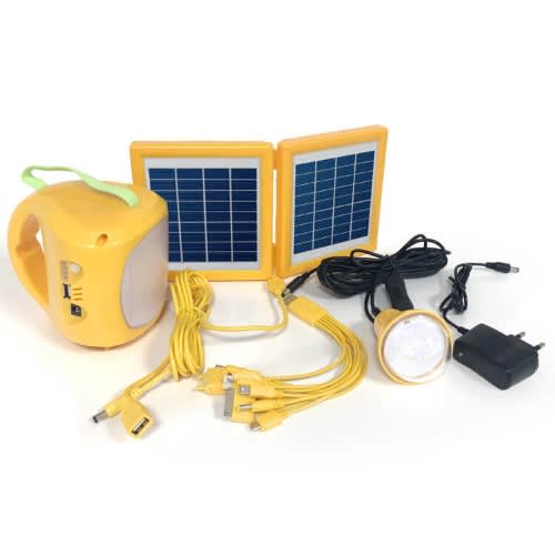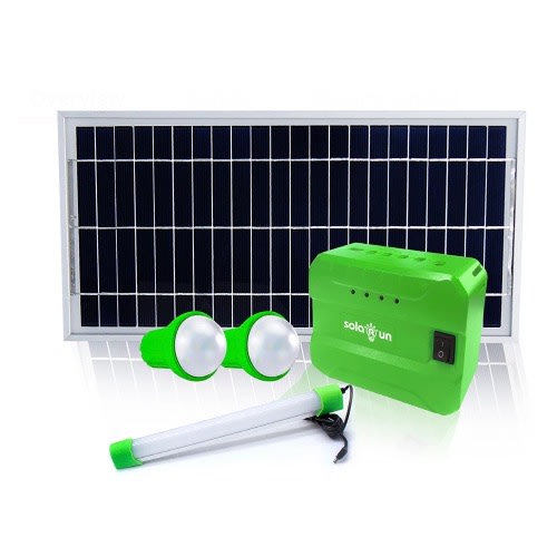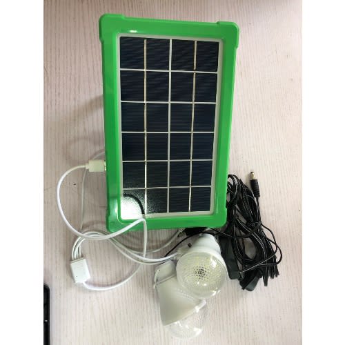 Package Include (1 power box, 1 power adapter, 1solar panel charger, 3 x 5W Led bulbs, 1 multi - USB cable)