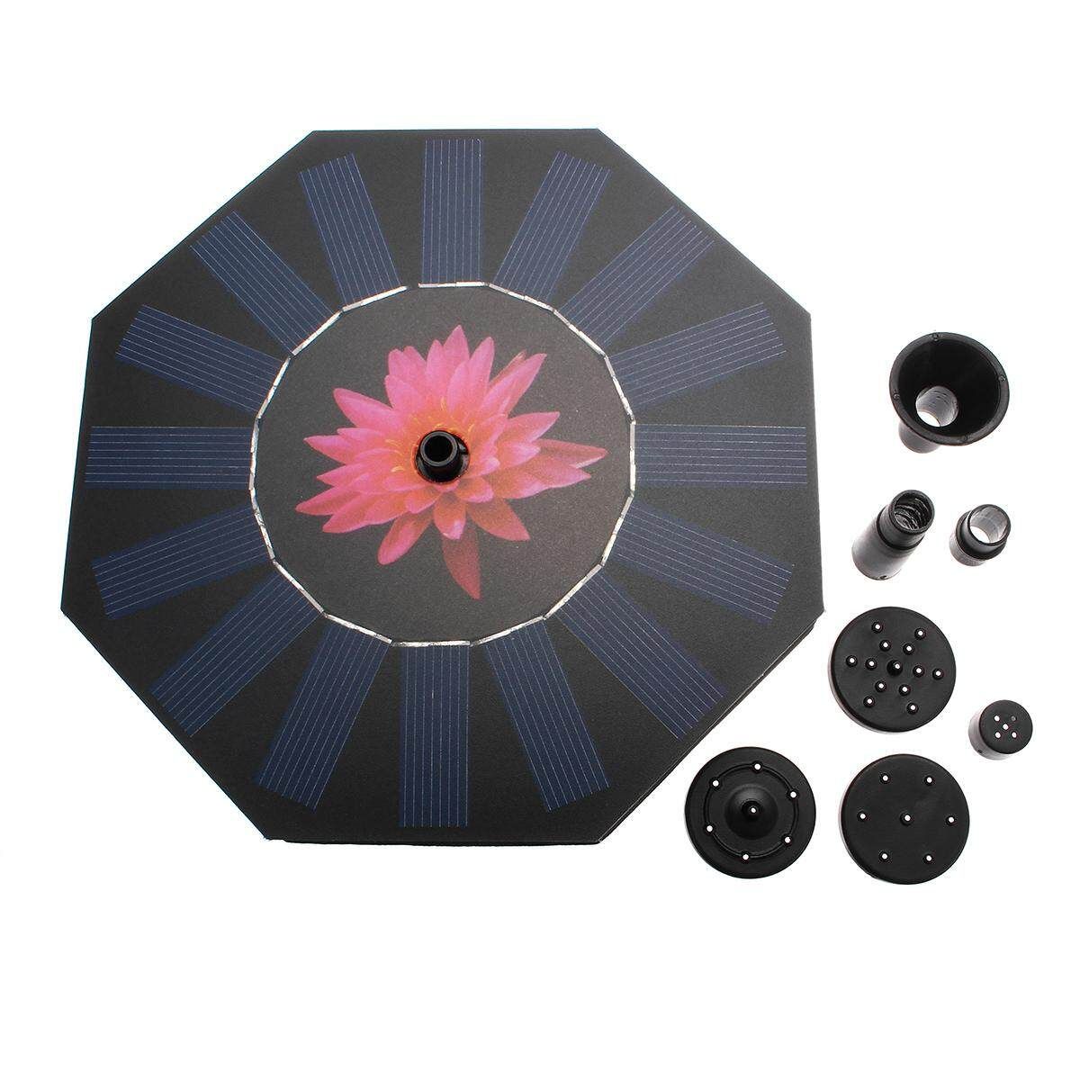 1 x Solar Fountain Water Pump 1 x Solar Panel 4 x Water Outlet Nozzles 1 x Nozzle Base 2 x Connection Heads 1 x User manual