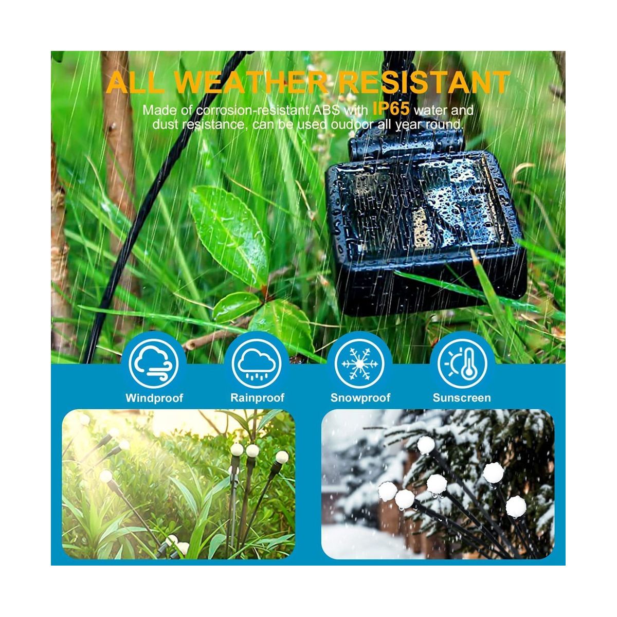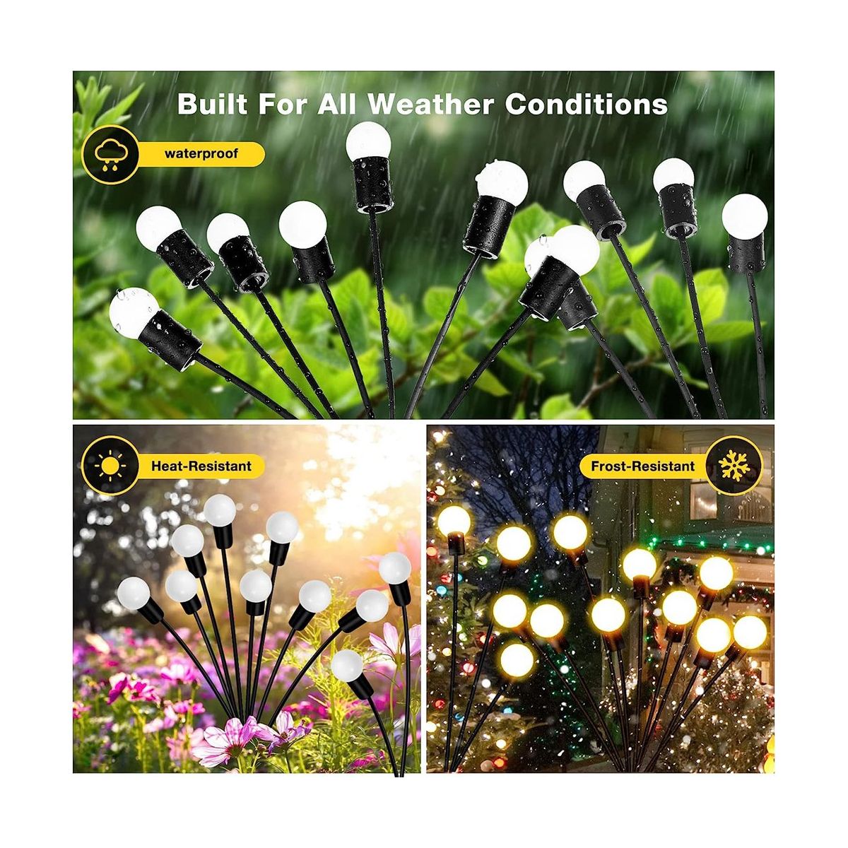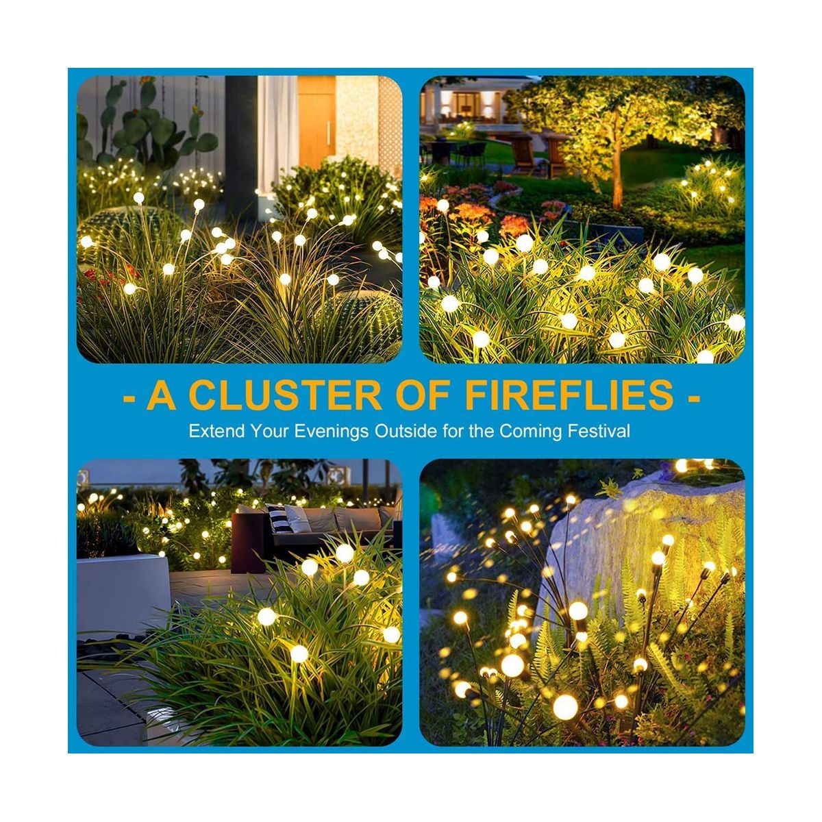 [Swaying When Wind Blows] solar firefly lights is propped by very soft & flexible wire. The warm white solar light looks like glowworms flying in the dark when wind blows, perfect garden decoration, make your garden more beautiful at night. perfect outdoor decoration for yards, yards, lawns, and sidewalks, and any occasions such as Christmas, weddings, New Year, parties, etc.