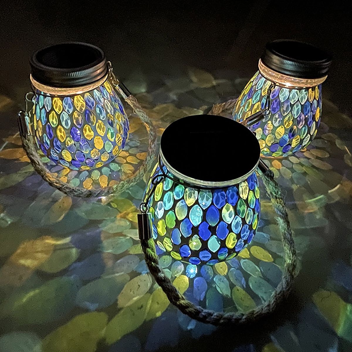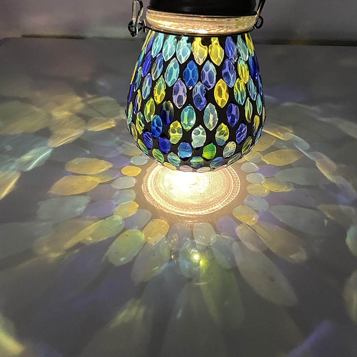 Features: Mosaic Lantern Shape, Solar Power, Waterproof