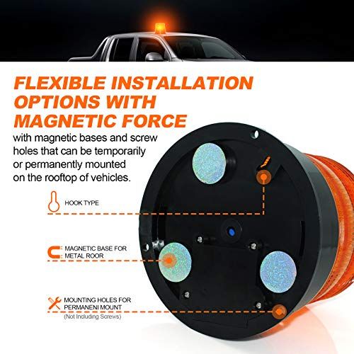 - EASY INSTALLATION - There are two installation methods to hoose. With 3 strong magnets at the base, LED strobe light an be easily installed on the metal top of any vehiles. Or use srews to mount fixed permanently.