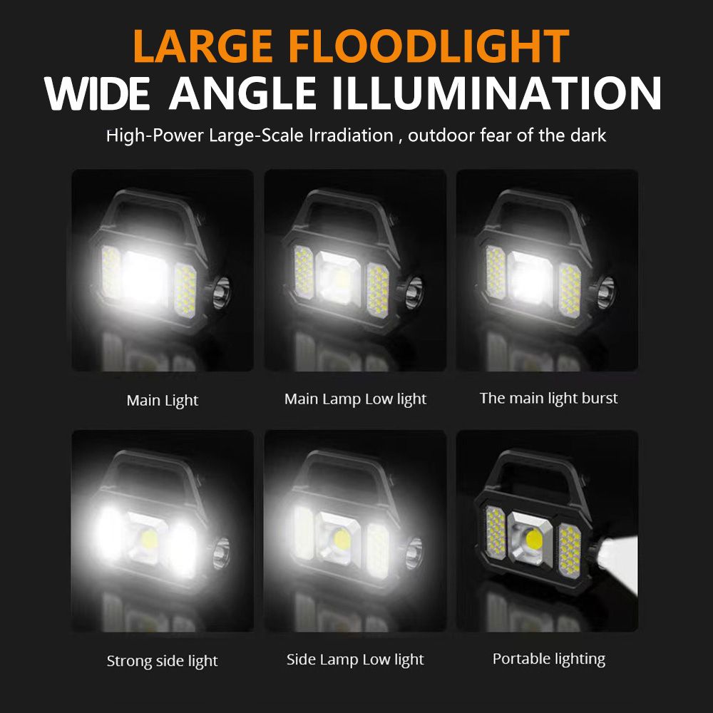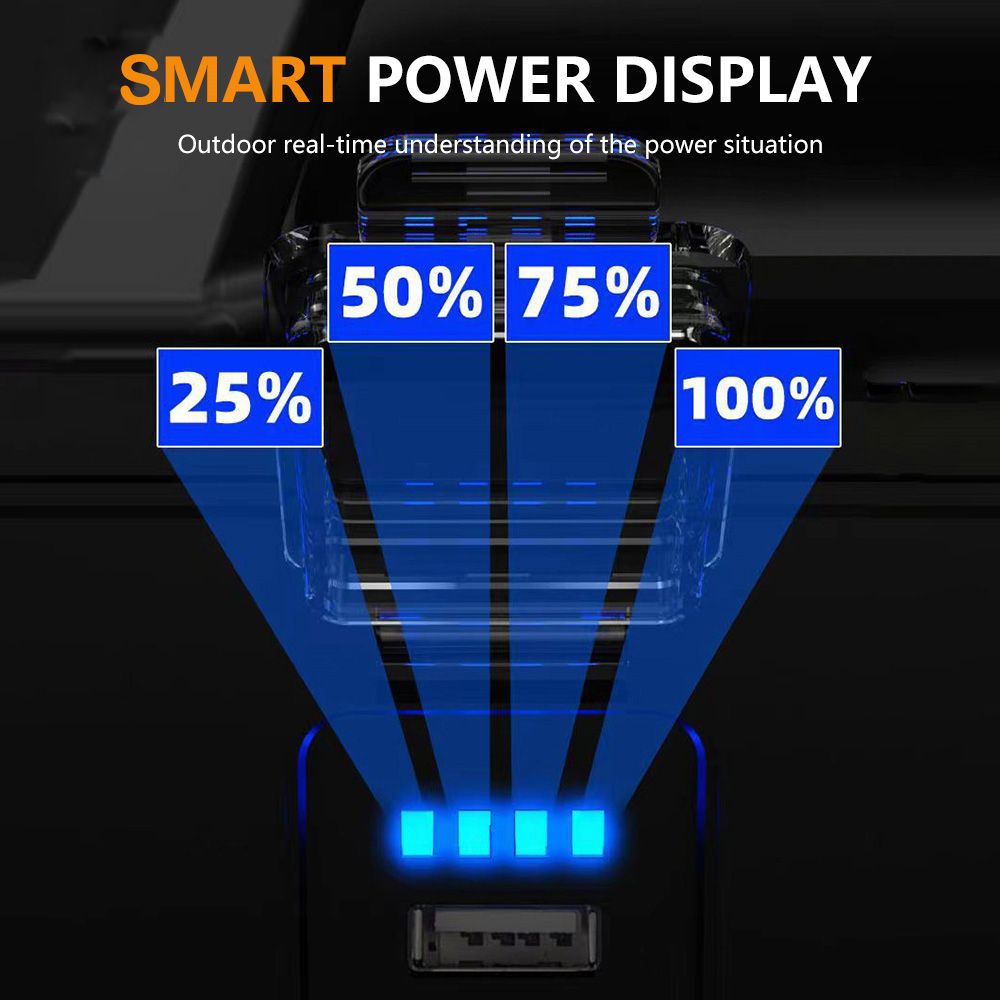 1.Material: High quality ABS material, strong and durable.2. With mobile power function, USB intelligent output, emergency charging of outdoor mobile phones and other equipment3. The solar panel on the back provides a stable power supply for the outdoors4. Charging method: Smart USB charging, compatible with various charging methods such as car, plug, mobile power supply, etc., charging anytime, anywhere.5. Power display: Four power displays, keep abreast of power usage, replenish power in time, and avoid insufficient power during outdoor use.6. Lighting mode: 6-level dimming (main light strong light, main light weak light, main light flickering, side light strong light, side light weak light, front light on), one-key switching, free choice.7. Suitable for: camping, hiking, cycling, mountaineering, night fishing, hunting, night running and other outdoor activities.8. Dual light sources: high beam + low beam, suitable for different scenes.9. Two charging methods: solar + USB charging.10. Power display: keep abreast of battery power.11. Emergency light: can be used as emergency power supply for mobile phones.