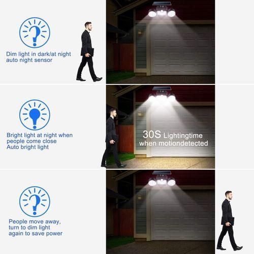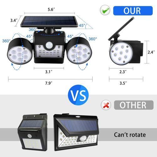 Super-bright 360°Rotatable&30 LED:This Solar Lights with Unique Wide Angle Design offers a larger coverage of luminosity. Total 14 LED lights In both sides and 16 LED lights in the middle. Also With 360° Solar Panel and 360° Rotatable Spotlights.It can be independently flexibly rotated, adjust any angle you want. with 800 Lumin super brightness for you in the night
