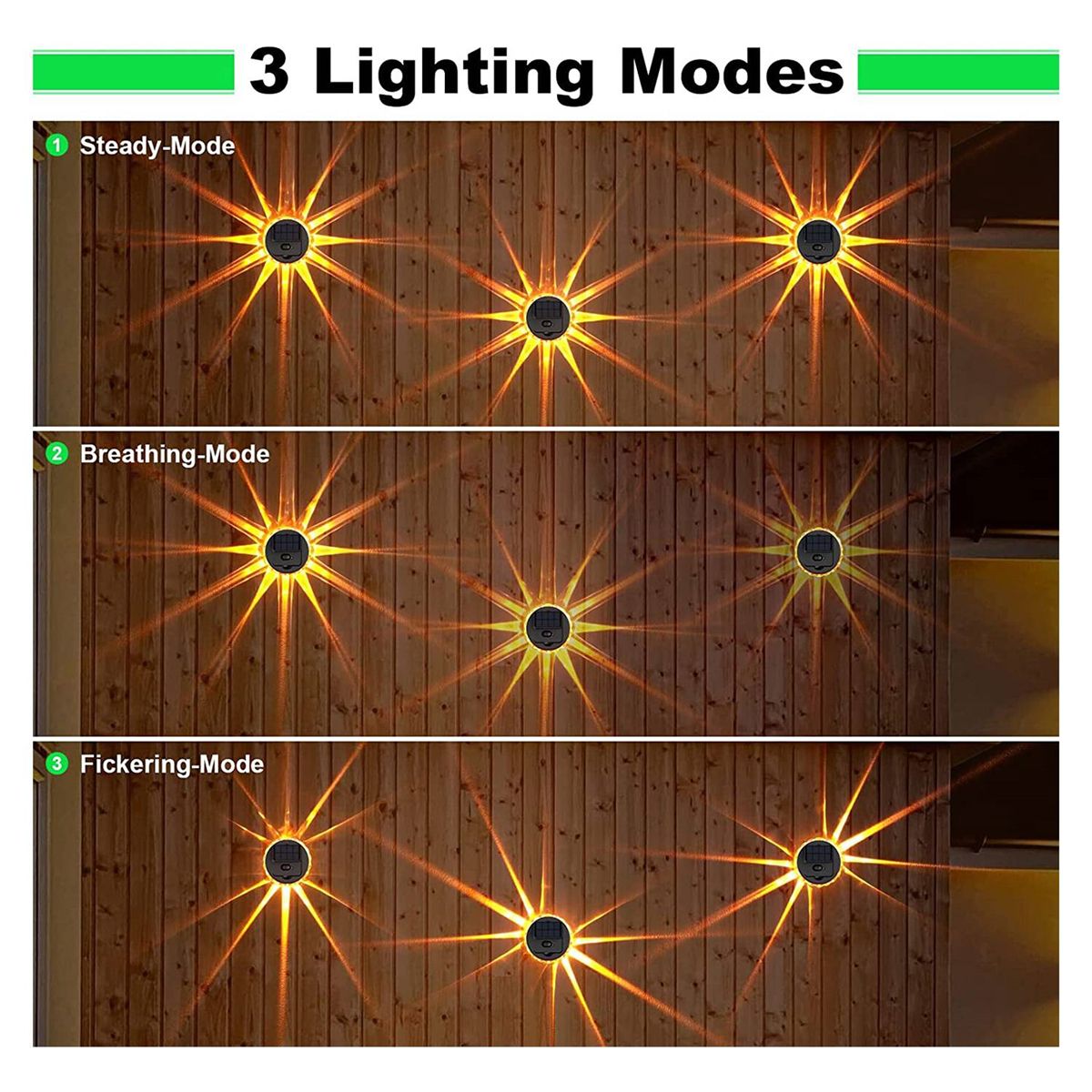 [3 mode dynamic rotating light] 1. Constant lighting mode 2. Breathing mode 3. Rotation mode. It is very suitable for the posts or caps of passages, roads, villas, fences, decks, porches, parks, driveways, pubs, bars, cafes, hotels, courtyards, etc.