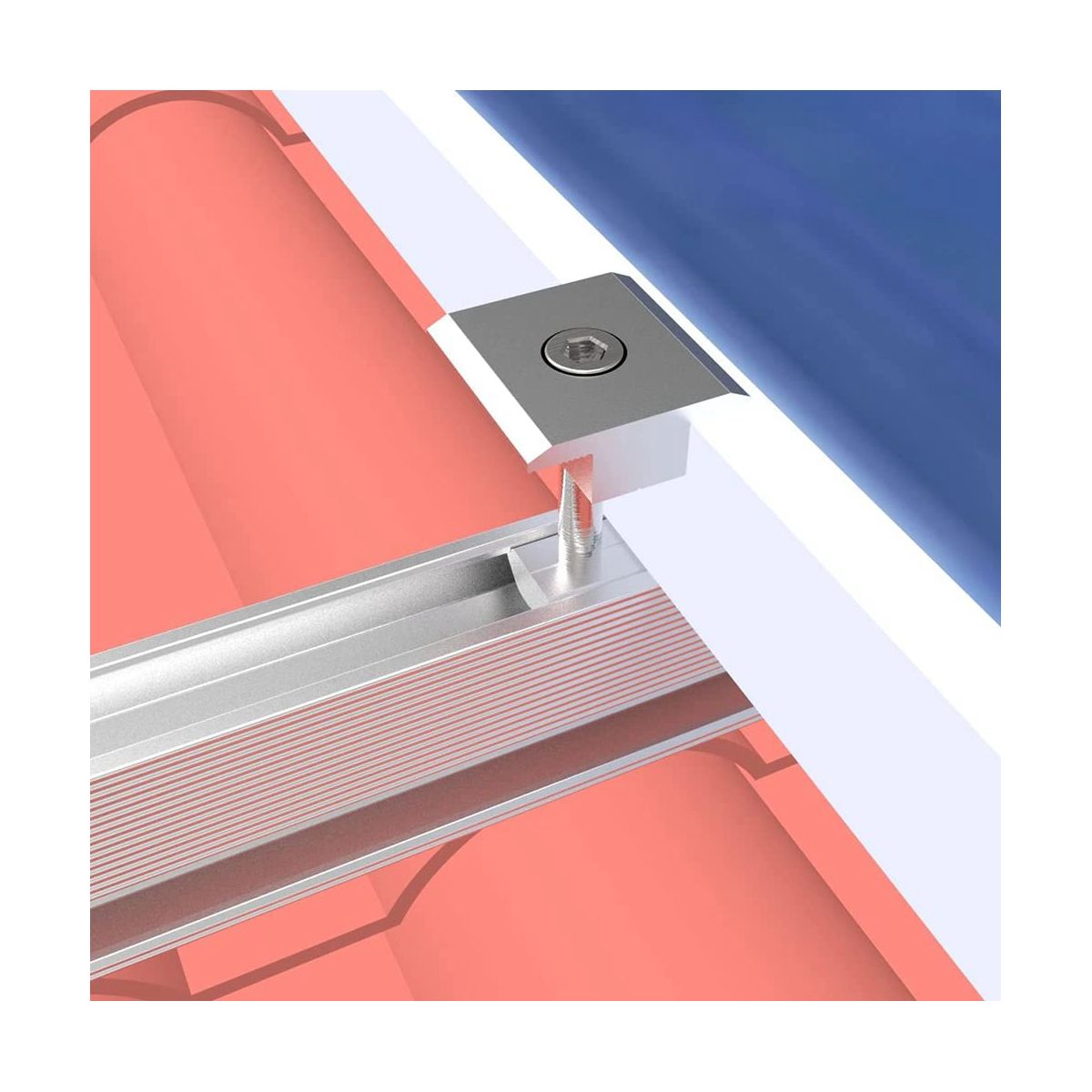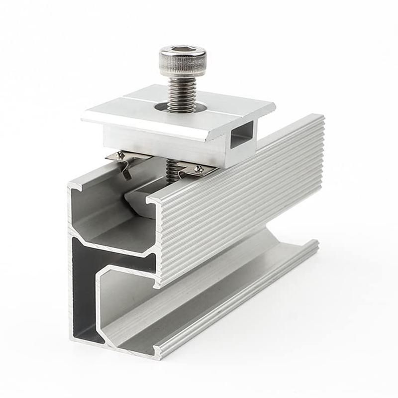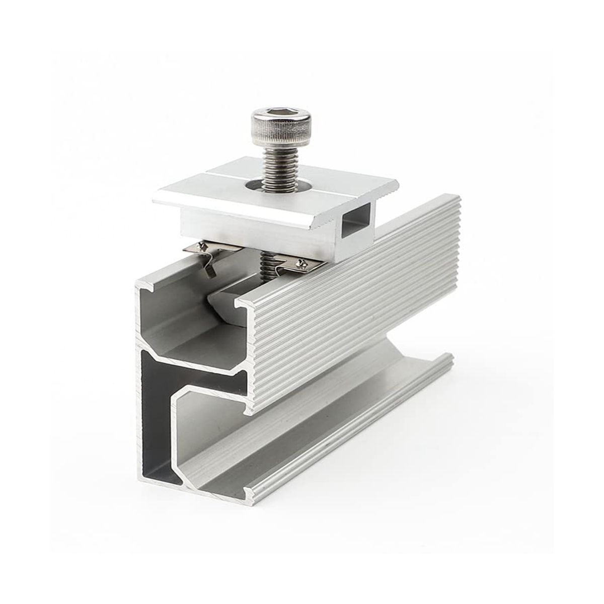 The solar mounting clip is made of aluminum alloy material after anodized treatment it has high strength corrosion resistance and UV resistance and is more durable than ordinary aluminum mounting clips is suitable for 30 mm solar panels