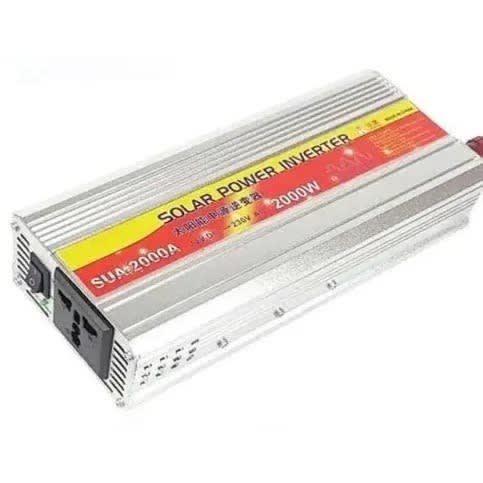 nput voltage 12v. Output voltage 230v. Rated power 1000. Efficiency & gt;80%. Durable metal housing provides advanced protection from drops and bumps. Integrated cooling fan helps reduce heat and prevents shortages. [Protections].Overload protection. Input over voltage protection. Over-temperature protection. DC 5V USB output 2000W DC 12V to AC 230V Low standby power cost Multiple safe protection High coversion effeciencyUniversal output socket Intelligent cooling fan controlled by the workload This power inverter is extraordinarily designed for home use,which can convert DC 12V/24V of portable power supply to AC 110V/220V/230V and it works for almost all the household electrical resistive appliances such as MP3/MP4 player,cell phone, laptop, emergency light, electric blanket, electric shaver, electric cooker,digital camera, digital video,CD/DVD player,XBOX/PS4 game player, ordinary electric lamps, bulb,fluoresent light, rice cooker,electric iron,desktop computer, graphoscope,fax machines, printers, LCD TV, electric fans, cell phone chargers, electric iron , drinking fountain,hair dryer and so on.(Note:Only pure sine wave inverter can run sensitive electric appliances that are including refrigerator, washing machine,microwave oven, induction cooker, electric drill,compressor,air conditioner,mercury lamp, sodium lamp and so on).