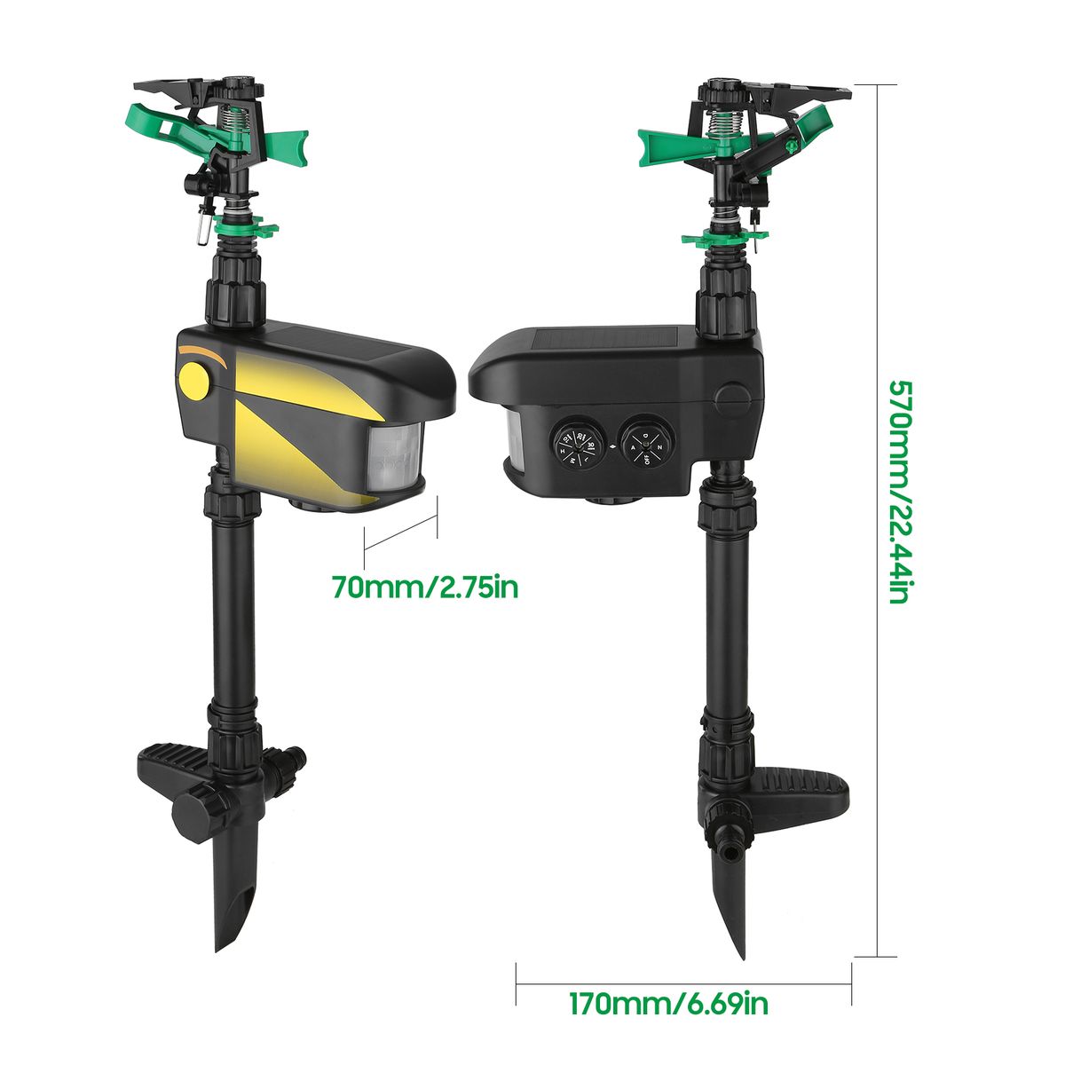 No Harm: solar power motion-activated sprinkler drives away animals with spraying water, effectively protects your farms, gardens, orchards, lawns, front yards, etc.