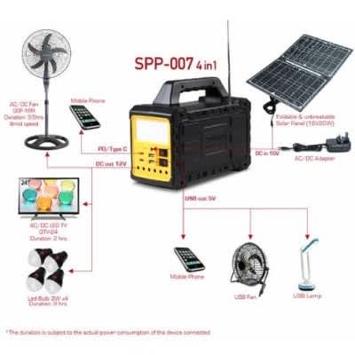 Being outside no longer means being short of power. Portable Power Station, you can easily stay charged while on-the-go. The Mini Solar Power System is a small but rugged off-grid portable generator that supports charging for all your necessities and more. It & rsquo;s engineered without an engine for clean power without the hassle of fumes, fuel, or noise with solar panel capability. this station is designed for home backup, camping, tailgating, festivals, studying or even office use. The Solar Power Kit is the perfect companion to depend on.A portable pwer kit IS ideal for emergency use. Equipped with maintenance-free storage battery, over charge, over discharge, overload, overvoltage, low voltage and short circuit/fuse protection