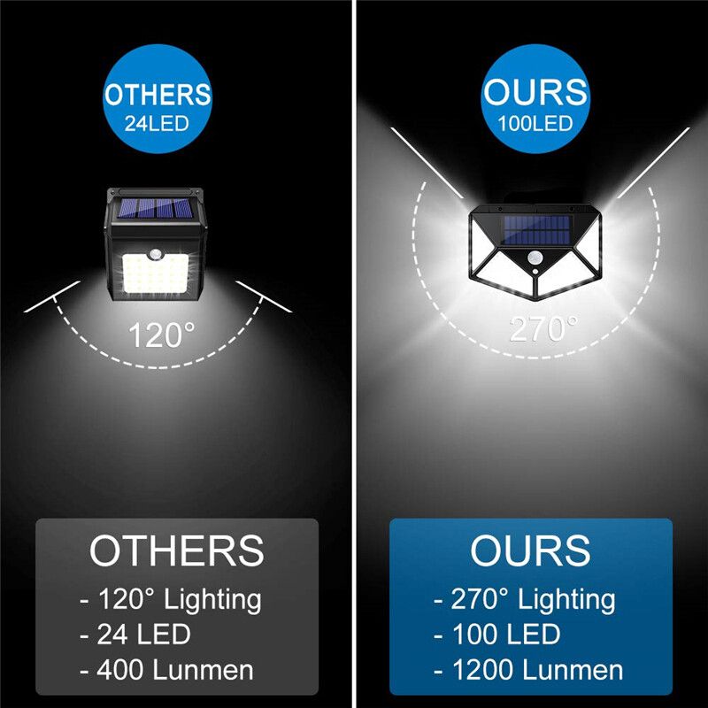 100 LED bright: outdoor solar lights with 100 bright LED beads, providing excellent illumination of up to 1200 lumens, far more than similar LED solar lights.