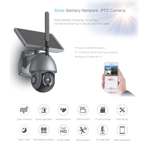 Buy Solar Ptz 355 Degree Camera Wifi 4k 4mp Outdoor Battery Wireless Pir Motion Detection in Nigeria
