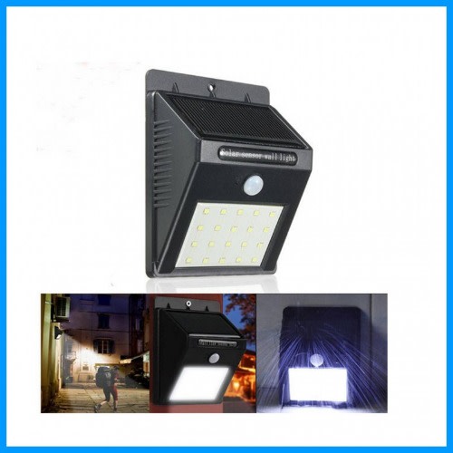 20-LED Wireless Motion Sensor Solar Light Wall Lamp for Corridor Hallway Gate CourtyardMain Features:Solar Charging DesignAdopted polycrystalline silicon solar panel, and the photoelectric conversion rate up to 90 percentEasy InstallationNo wiring required, just mount the light on the wall that can get enough sunlightWide Application ScopeWidely used in the place of roads, courtyards, gardens, driveway, bench, patio, fence, deck, porch, etc. It is a perfect light as well as a decorationSave Electricity CostNo electricity bill to pay and no installation costAuto-rechargingBuilt-in day and night sensor. In the daytime, when there is the sunshine, the solar panel can convert the solar energy to electric energy and store it in the battery. At dusk, it will light up when the people appear. Energy-saving and environmental protectionParameters:Solar panel: 5V 0.55WBattery: 3.7V 1200mAh 18650 battery (built-in)Fully recharged time: 6 - 8 hoursLumen: 22 - 24LM per LED beadColor temperature: 5000 - 5500KSensing angle: 120 degreeSensing distance: 5mWaterproof: IP64Lighting mode: the light will turn on the high light when the people appear, the light goes off when the people leave, after the light delay time 10 seconds