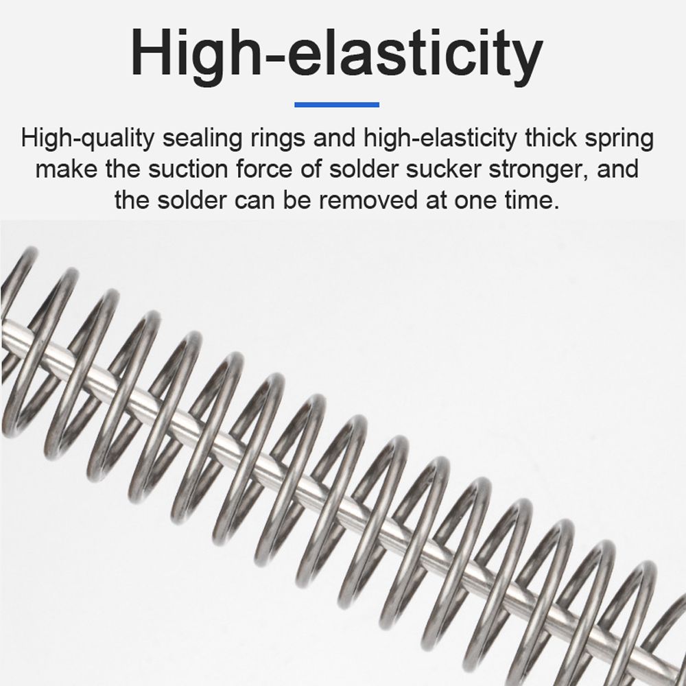 High-quality sealing rings and high-elasticity thick spring make the suction force of solder sucker stronger, and the solder can be removed at one time.