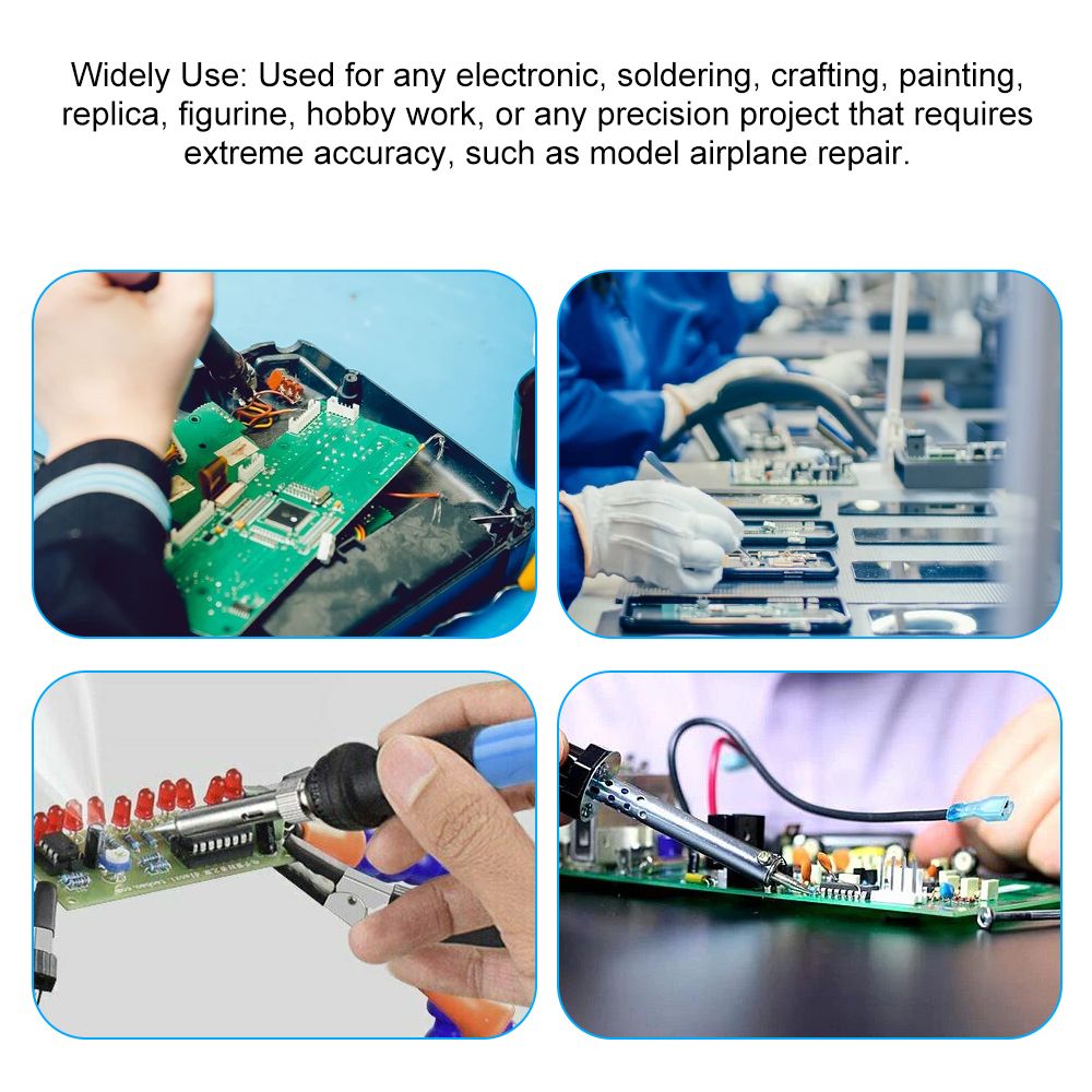 Widely use, used for any electronic, soldering, crafting, painting, replica, figurine, or any precision project that requires extreme accuracy.