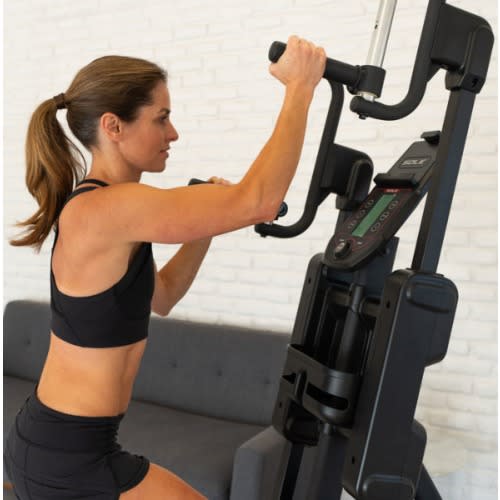 On the reverse side is the full body twister that hits your abdominals, obliques, and hip flexors. The handles allow you to target the exact muscles you want as well as make it a full-body workout. Along the sides are dumbbells so you may even change up what type of upper body exercises you want. This is a full-body exercise machine that allows you to keep track of your steps, time, and calories on a convenient LCD screen. With this Soozier 3 in 1 exercise machine, you can finally earn the body of your dreams in the comfort of your own home. Features 3 exercise machines and free weights all in one Cardio stepper machine to work legs Twister disc for abs and oblique toning Tones full body in one convenient machine LCD display screen tracks time, steps and calories burned American Fitness