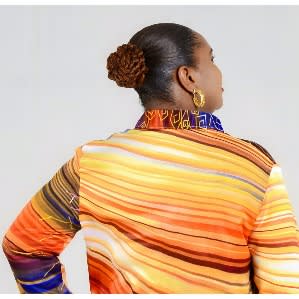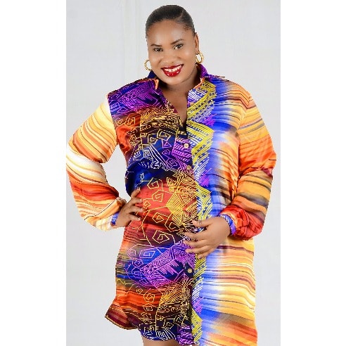 Awaken your inner artist in this sun inspired stripped satin tunic length dress shirt for that fun loving, creative and chic appeal that lightens your mood and makes you stand out of the crowd. We think this style pairs well with a pair of jeans and sandals for a modest look.