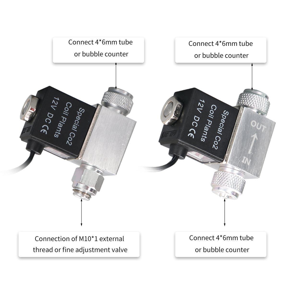 Settable: Turn on and off automatically when used with a timer. Thanks to this CO2 solenoid valve, timer can connect your aquarium's lighting system and cuts off the CO2 supply depending on light. keeping your aquatic plants healthy, more convenient and save energy.