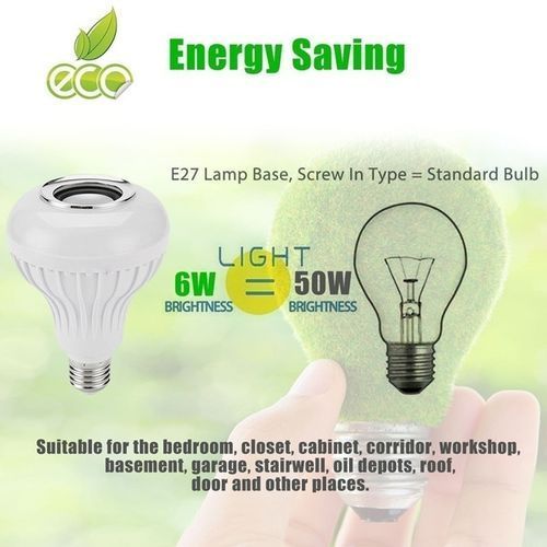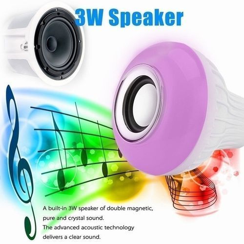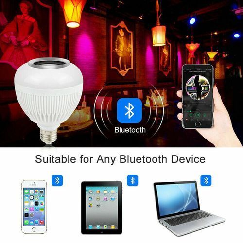 This bulb is an energy saving bulb,a Bluetooth enabled, multicolored, energy efficient smart LED light which can be controlled through your smart phone and IR remote controller. It can also be control with your TV remote. 100% new and high quality. 2 in 1 smart Bluetooth speaker LED lamp, it brings you beautiful light and wireless music enjoyment at the same time. LED Lamp Appearance,Different Color Options. E27 Lamp Base, Screw In Type. Adjustable Volume Of Light And Music and comparable to a 50 watts halogen bulb. It can be fixed to your bed lampshade, 24Key Remote Controller - Change to color you want with a handy Controller. Different Lighting Mode - Flash, Strobe, Fade, Smooth, can suit with any atmosphere. Energy saving, environmental protection, low power, low heat enerating. Easy to install and operate. Suitable for the bedroom, closet, cabinet, corridor, workshop, basement, garage, stairwell, oil depots, roof, door, home decoration, Hotels, clubs, shopping malls decoration, architectural decorative lighting, boutique atmosphere lighting, meeting room, factory and other places