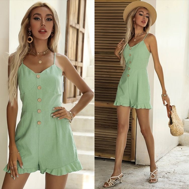 Solid Color Sling Ruffled Wide-leg Jumpsuit