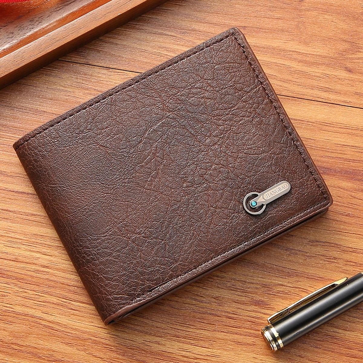 Our stylish and functional solid color wallet with metal labels! this wallet is the perfect accessory for any occasion, designed to be both fashionable and business-friendly. crafted with fine workmanship, it is made to last and features a solid color design complemented by metal labels for a touch of sophistication. whether you're heading to the office or going out for a night on the town, this wallet will elevate your style.