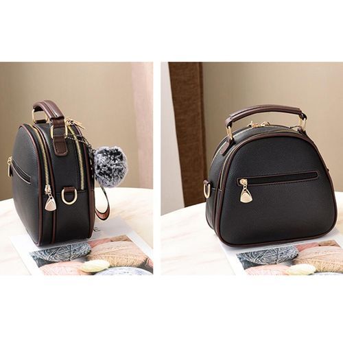 Fashion Solid Color Women Shell Bag Portable Shoulder Bag Fashion PU Leather Elegant Female Bag With Gray Hair Ball