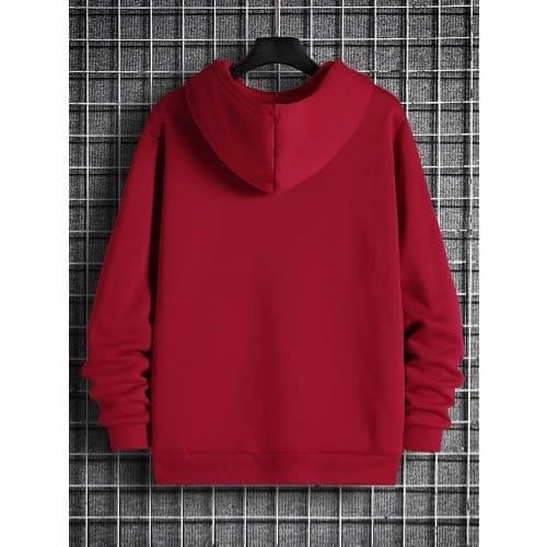 Buy Solid Drawstring Pocket Detail Thermal Lined Sweatshirt - Red in Nigeria