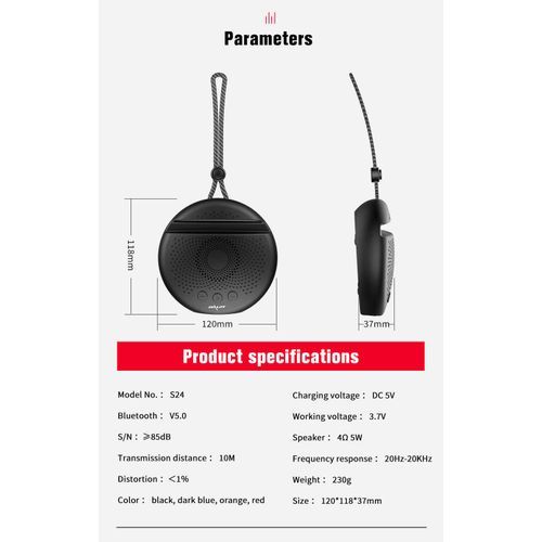 Bluetooth Speaker, you will thoroughly get rid of the littery cable of headset or other music player when listen to music from your portable devices at home or outdoor. And, you just need to pair you phone or other music player which support Bluetooth with the Speaker. After paired, you can immediately enjoy the music with the speaker that offer you great sound quality. Moreover, if your device does not have Bluetooth function, you have no need to worry about it. The Speaker's "bluetooth" mode allows to connect with any audio device, after connected, the Speaker play the music of the connected audio device. Even more, the speaker can play music of the TF card. It is perfectly suitable for home use, office use, picnic, etc