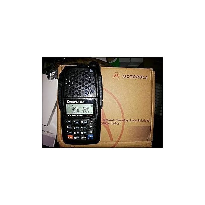 Motorola Gp399 Dual Band Uhf- Vhf RadioThe GP399 Series come with a dual push-to-talk button. The dual PTT is a huge leap forward in the HT technology. It allows you to transmit on two frequencies by the use of the rocker PTT switch. By pressing up you can transmit on “Frequency A” and by pushing down you can transmit on “Frequency B”. Frequency A or B can also be used as a scanner of channels, frequencies, CTCSS and DTS tones. VERSATILE RADIO FOR AMATEUR USE. The MOTOROLA GP399 is legal for use on amateur frequencies. The GP399 is able to Transmit on Narrow band (12.5kHz) and Wide band (25kHz) DUAL WATCH RECEIVER. The MOTOROLA GP399 has one built-in receiver but can “watch” two channels (semi duplex). Monitor two different frequencies (even on different bands (VHF/UHF)) and the radio will monitor both frequencies giving priority to the first station to receive an incoming call. FM BROADCAST STATIONYou can listen to the FM Broadcast radio, while still monitoring your radio frequencies in the background. Any incoming call will be given priority insuring you never miss an important call while listening to the radio. GROUP TONES SUPPORTED. The MOTOROLA GP399 supports the most common Analog Tones. It supports CTCSS, DCS, and DTMF calling methods. Set-up your calling methods to call by group tones. Tone calling (private line) is required by most repeater applications and the GP399 supports the latest standards Motorola Gp399 UHF/VHF Walkies Talkie Radio.