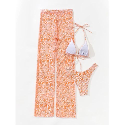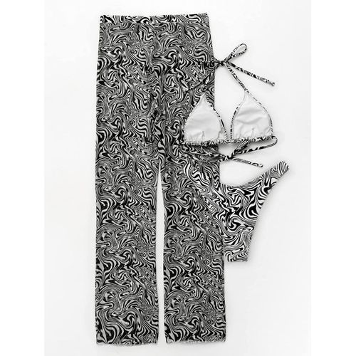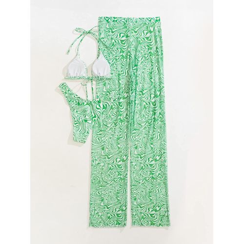- Feature: Halter, tie back, triangle tops, allover print, pants cover up, fashionable