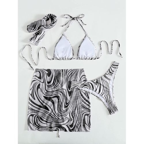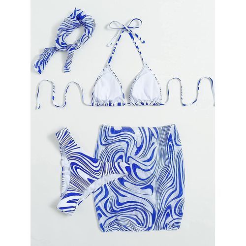 - Feature: Halter, tie back, allover print, triangle tops, high cut bikini, beach skirt, fashionable