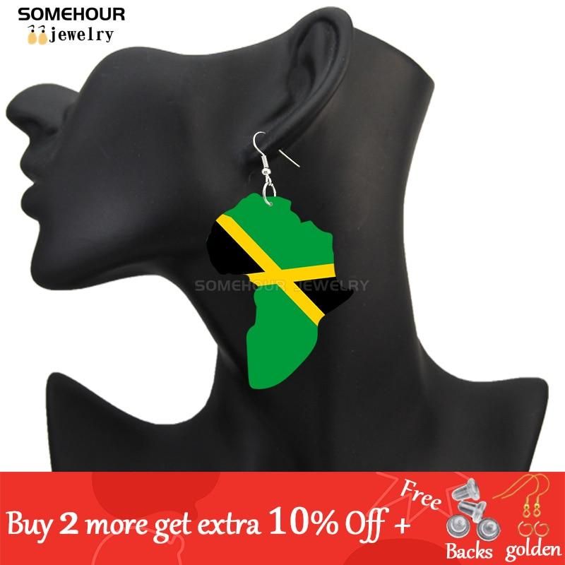 Buy SOMEHOUR Jamaica Country Flag Print African Map Wooden Drop Earrings Trendy Loops Pendant Dangle Jewelry For Black Woman Gifts in Nigeria