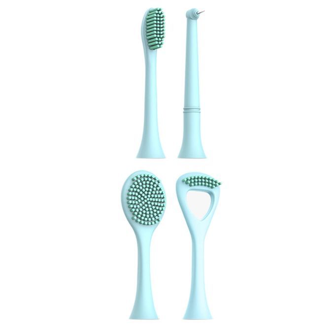 Provide 4 types of changeable cleaning heads to suit all different conditions of oral area, such for teeth,gums and tongue.