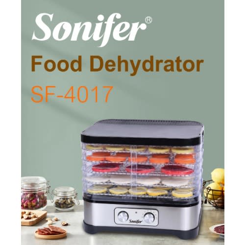 Multi-Tier Kitchen ApplianceDehydrates Food for Enhanced PreservationScientifically Tested to Increase Food Shelf LifeEasy, Single Button Operation and Nutritious ResultsFaster & More Efficient Alternative to Food DehydrationEffectively Dries Food by Removing Moisture ContentGreat for Food Storage: Drying Causes Food to ShrinkFood Reconstitution: Food Absorbs Water & Swells to initial SizeDehydration Retains up to 97% of Vitamins & MineralsHealthier Choice Alternative than Canning or FreezingYour Food Maintains Nutritional ValuePrepare Healthy Snacks for All AgesDries Your Food to Reduce SpoilageStain Resistant & Easy-to-CleanSimple One-Press Button OperationReaches Maximum Temperature of 180 & deg; F(5) Tier Trays for Enhanced Air-FlowHigh-Heat Circulation Travels Through Each TrayHeat Resistant and Dishwasher Safe TraysWorks with a Wide Variety of FoodsMeat, Fish, Poultry, Fruits, Vegetables and MoreUse for Meats to add in Stews, Soups, etc.Perfect for Making Oil-Free Veggie ChipsMake Home-Made Beef Jerky